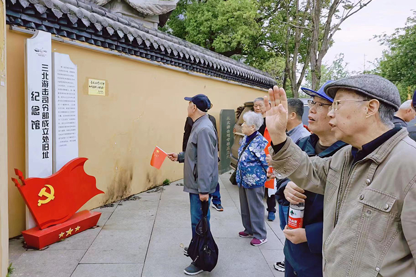 “我宣誓,我志愿加入中國共產(chǎn)黨,擁護(hù)黨的綱領(lǐng),遵守黨的章程,履行黨員義務(wù),執(zhí)行黨的決定……”在慈溪三北游擊司令部舊址,敵后抗日第一站紀(jì)念碑前,黨員們的句句誓詞響徹天際。